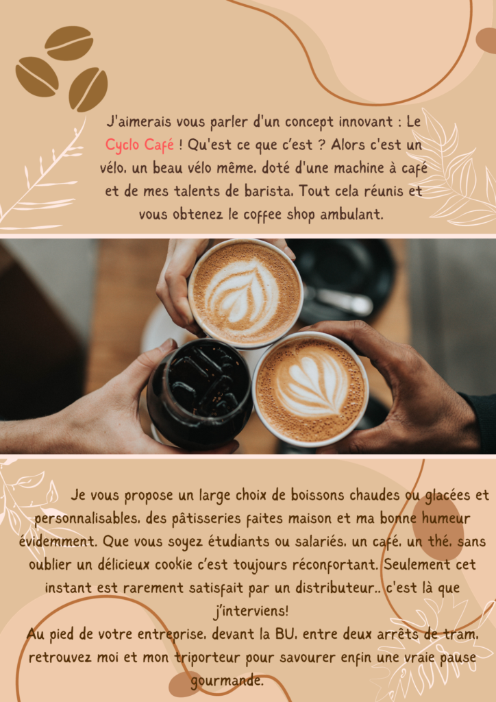Cyclo Café Coffee shop ambulant Retrouvez moi du Lundi au vendredi sur le domaine universitaire de bordeaux facebook Instagram